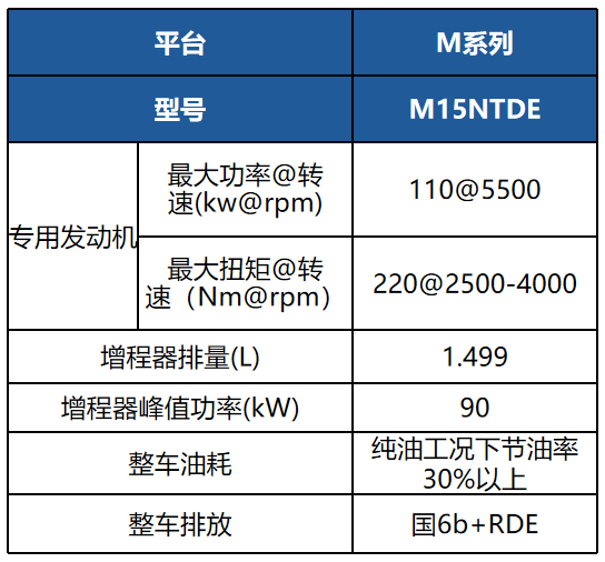 满足乘用车五阶段和国6b+RDE排放法规,热效率42%以上。M15NTDE发动机已经完成全工装机验证,M15NTDE发动机为面向乘用车市场的新能源专用发动机,已搭载T3高端SUV。技术特点